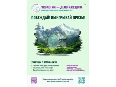 На этой площадке будут собраны лучшие экологические инициативы детей, молодежи и старшего поколения из России и не только, зарубежные участники смогут рассказать об опыте той страны, где они живут. Премия позволит настроить продуктивную работу для воспитания принципиально нового, ответственного поколения.