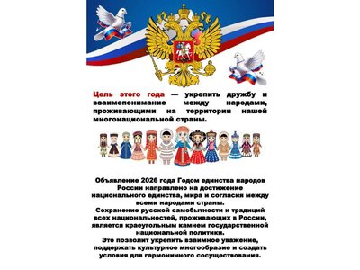 Объявление 2026 года Годом единства народов России направлено на достижение национального единства, мира и согласия между всеми народами страны.