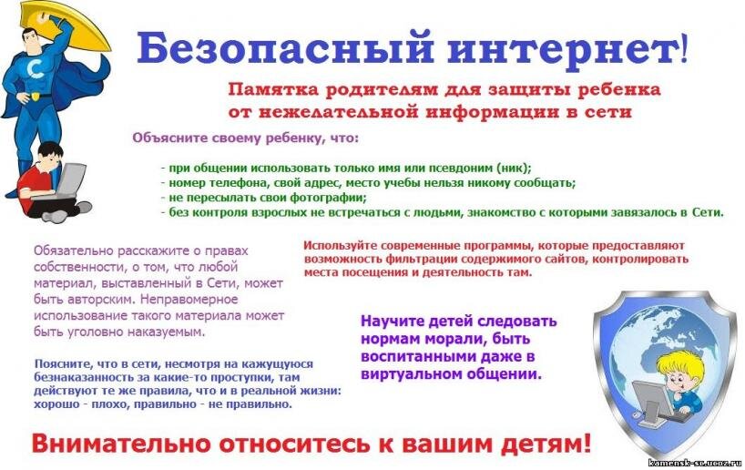 http://www.saferunet.ru - Центр Безопасного Интернета в России.Сайт посвящен проблеме безопасной, корректной и комфортной работы в Интернете. А конкретнее – он занимаемся Интернет-угрозами и эффективным противодействием им в отношении пользователей. Центр был создан в 2008 году под названием «Национальный узел Интернет-безопасности в России».